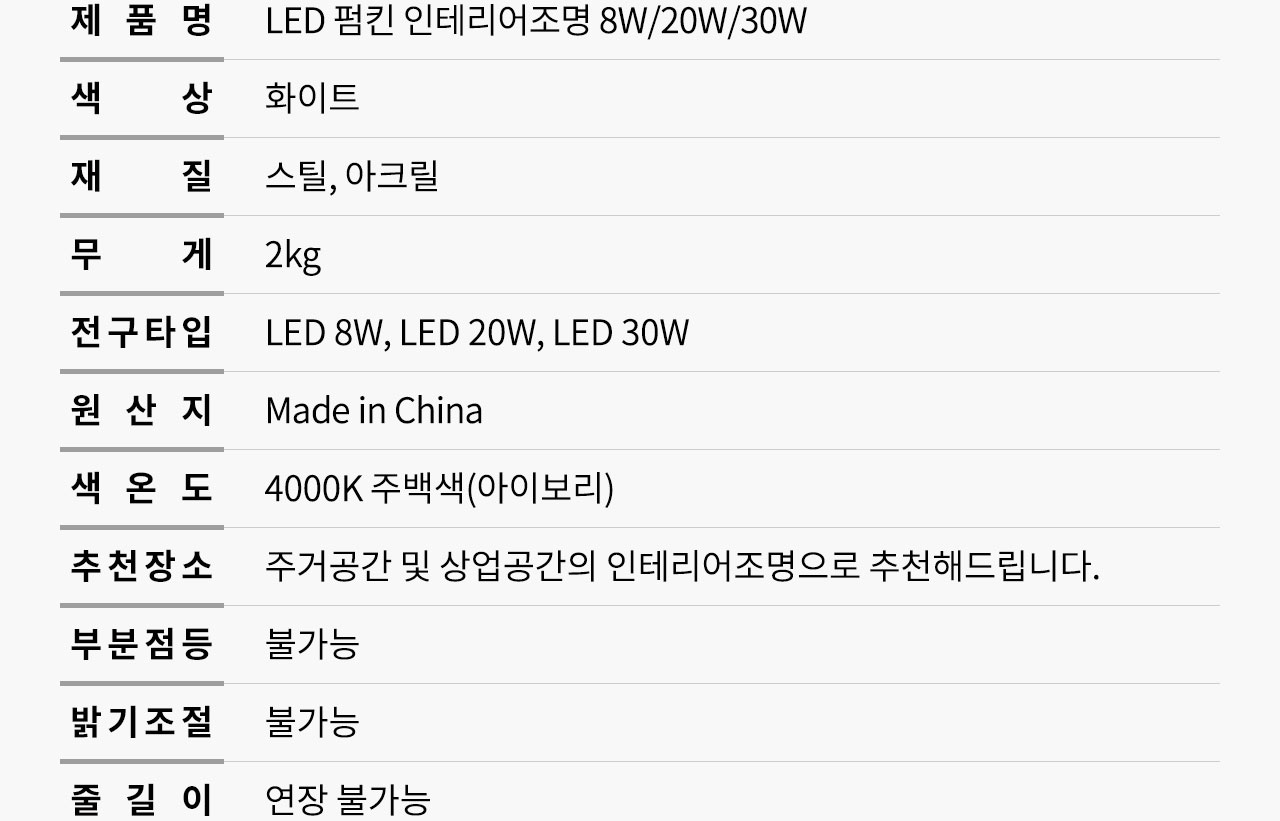 1100003887 LED ÆßŲ ÀÎÅ׸®¾îÁ¶¸í 8W/20W/30W