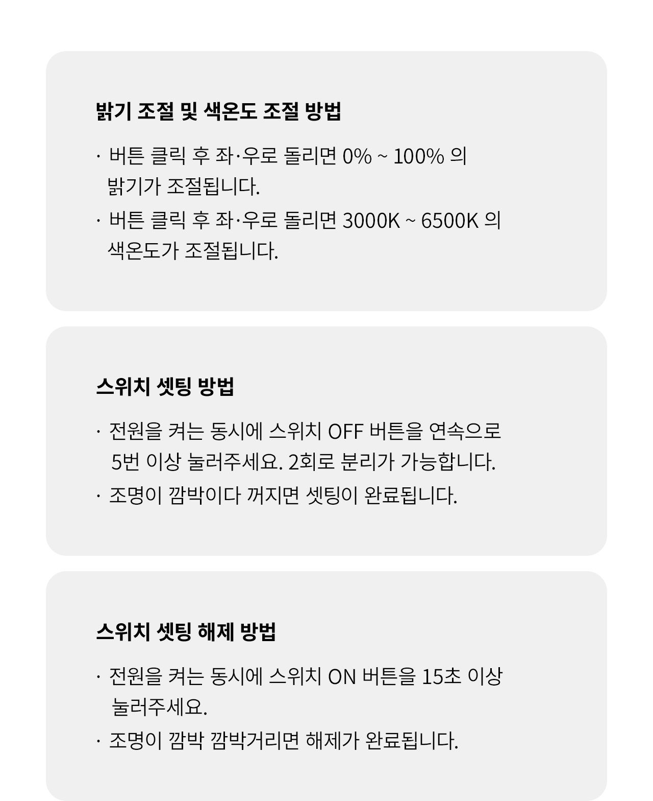 »ö¿Âµµ : 4000 ~ 5000k Á¤¿ÀÀÇ Å¾çºûÀ»´àÀº ºûÀ¸·Î ÀÚ¿¬½º·¯¿î ºÐÀ§±â ¿¬Ãâ °¡´É